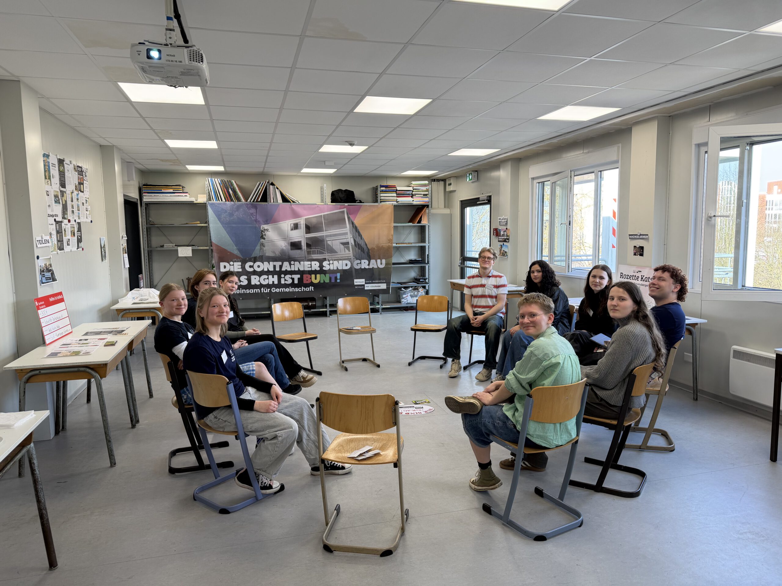 Seit dieser Woche plakatiert die Schule ohne Rassismus-AG (SoR-AG) den Slogan „Das RGH ist bunt!“ in der Werrestraße. Auch wenn sich der Zustand der Schulcontainer