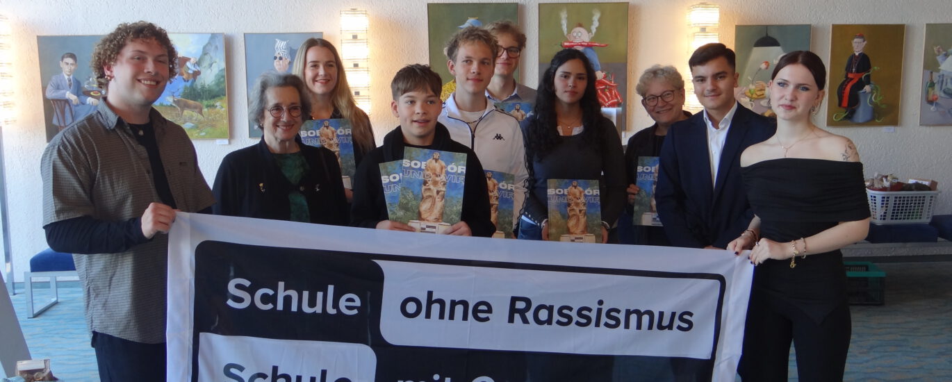 Raphaela Kula und Fritz Bornemeyer unterstützten die Organisation und Ausgestaltung der Veranstaltung. Als Atelier Ostbahnhof haben sie bereits verschiedene Gedenkveranstaltungen mit Rozette Kats durchgeführt. Zum Ende der Veranstaltung unterzeichneten die Schülerinnen und Schüler der SoR-AG, Rozette Kats und Andrea Bartels die Patenschaftsurkunde und besiegelten damit die Patenschaft der Holocaustüberlebenden für das „Schule-ohne-Rassismus“-Projekt am Ravensberger Gymnasium.